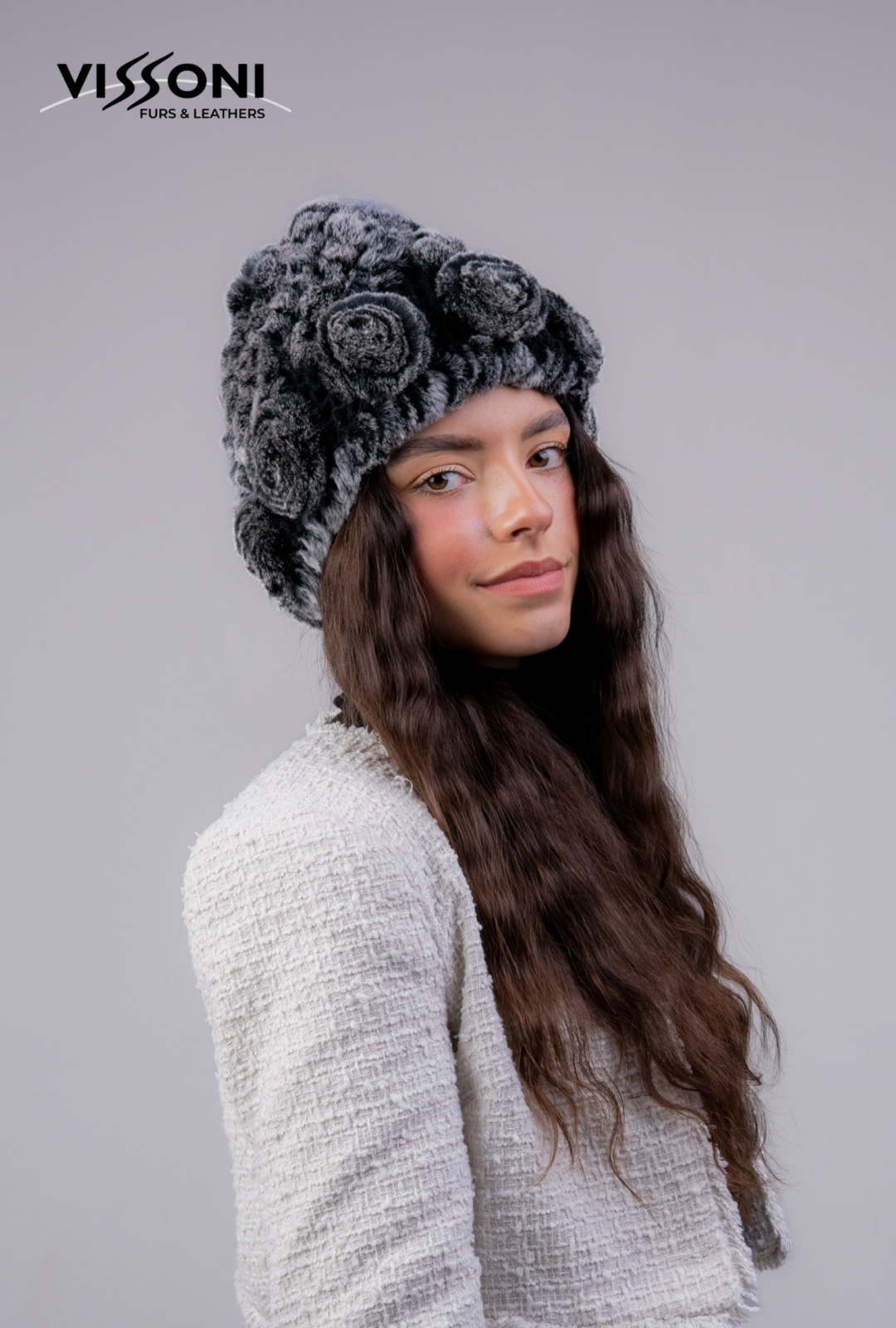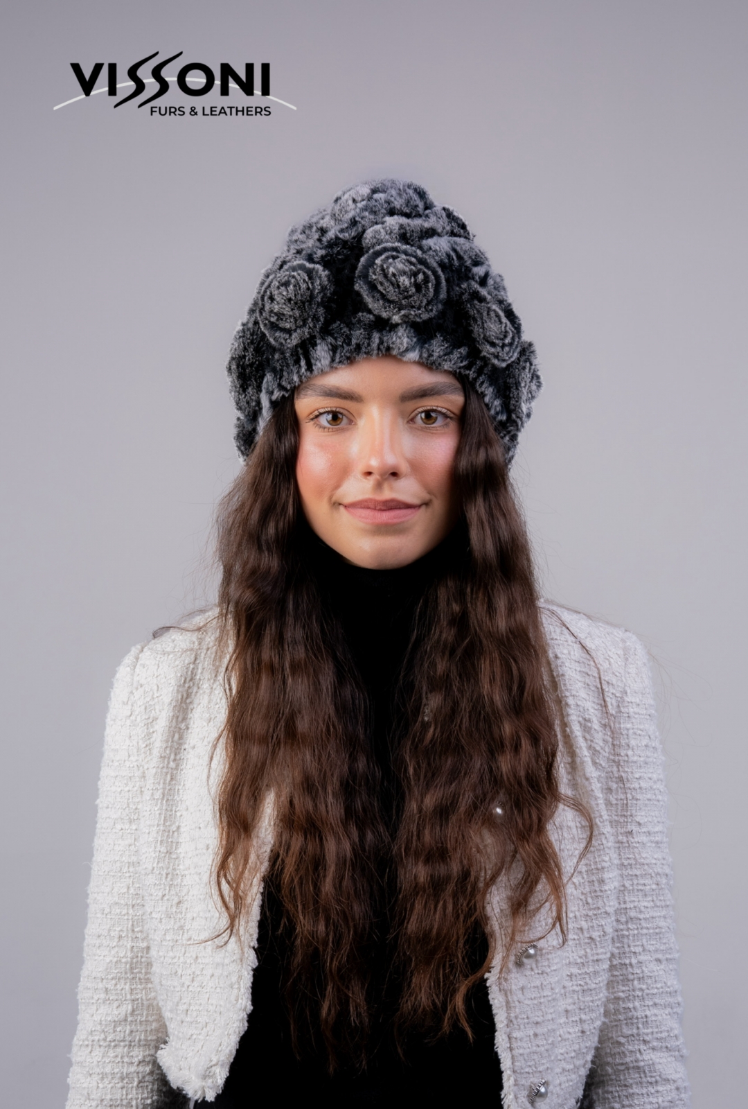 Дамска шапка от естествен косъм на Rex Chinchilla с рози