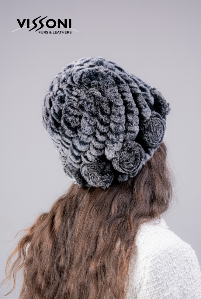 • Елегантна дамска шапка, изработена от естествен косъм Rex Chinchilla.