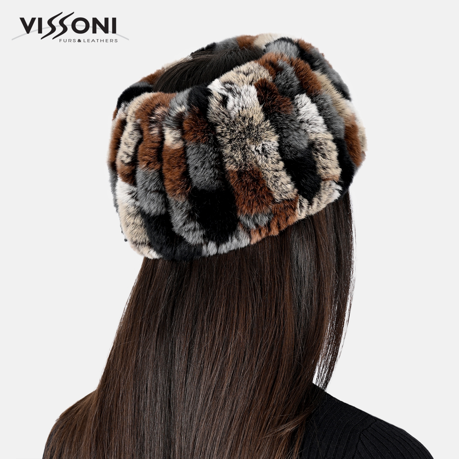 • Лента за глава от 100% естествена Rex Chinchilla - цвят Многоцветен