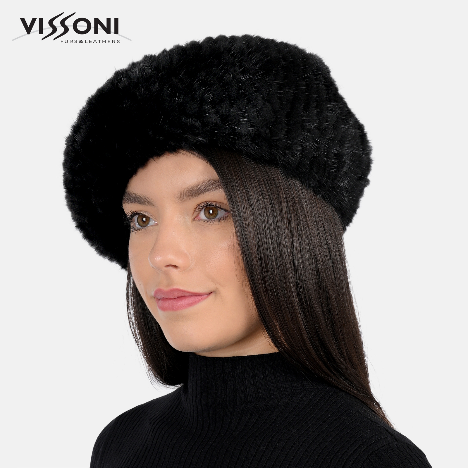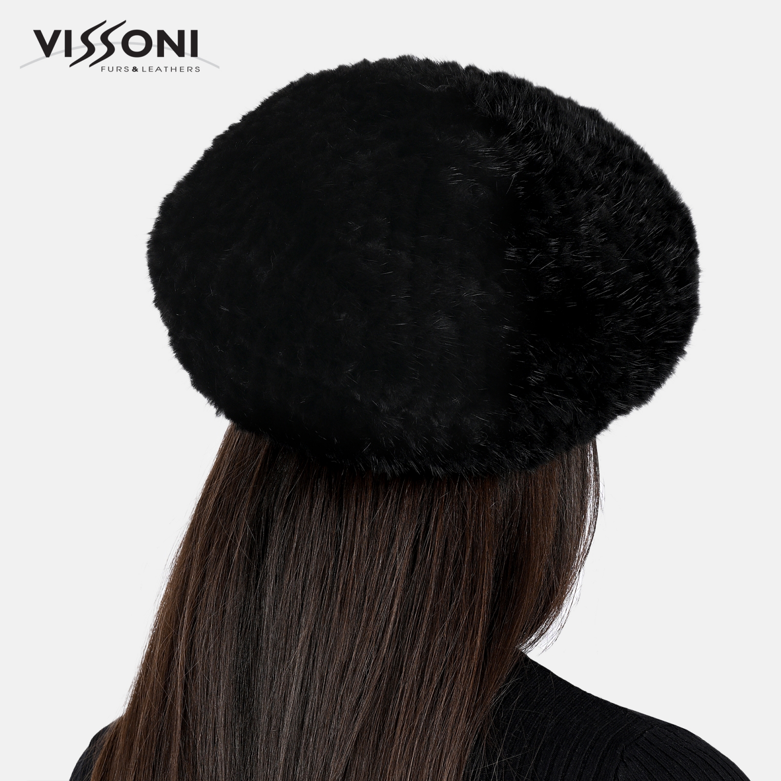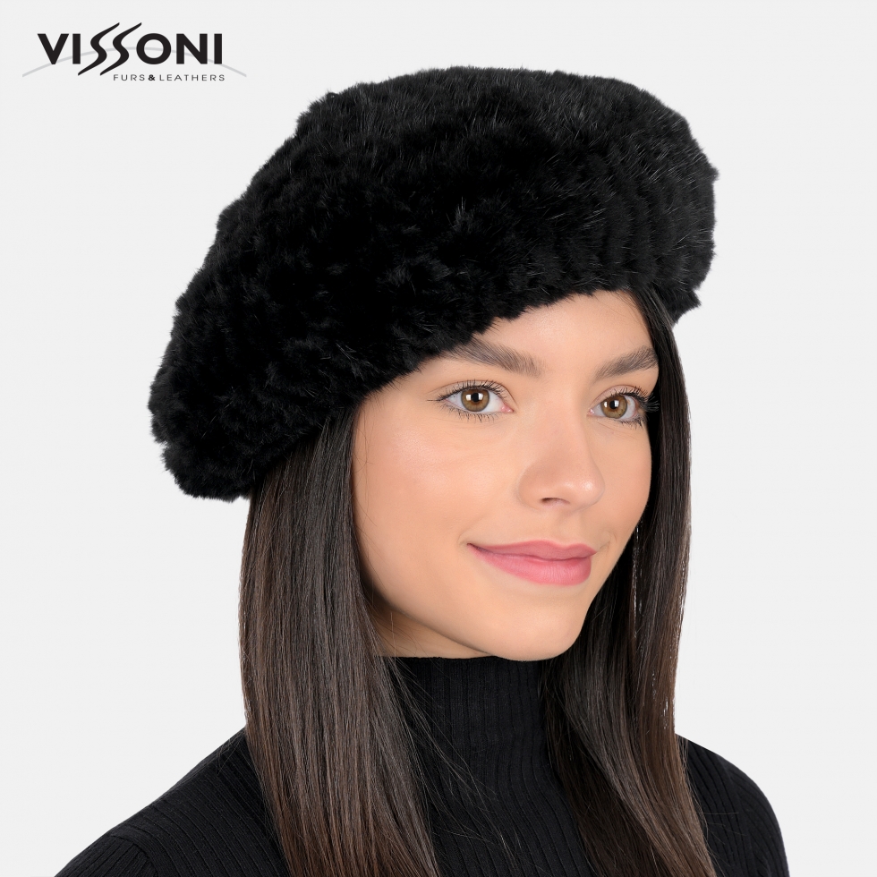 • Дамска барета от естествен косъм на норка - Черна