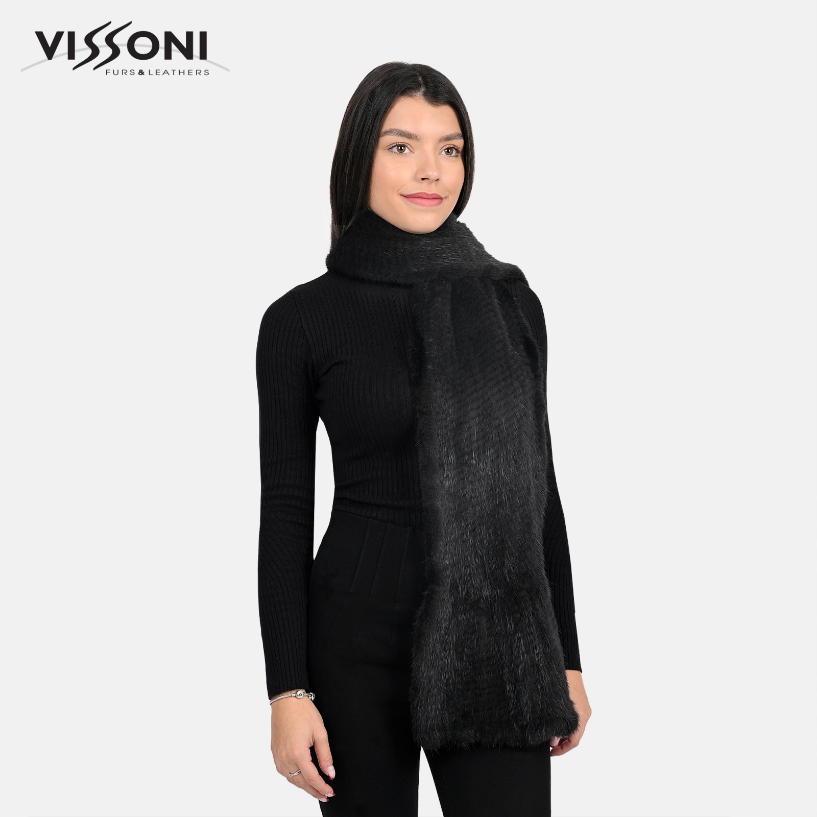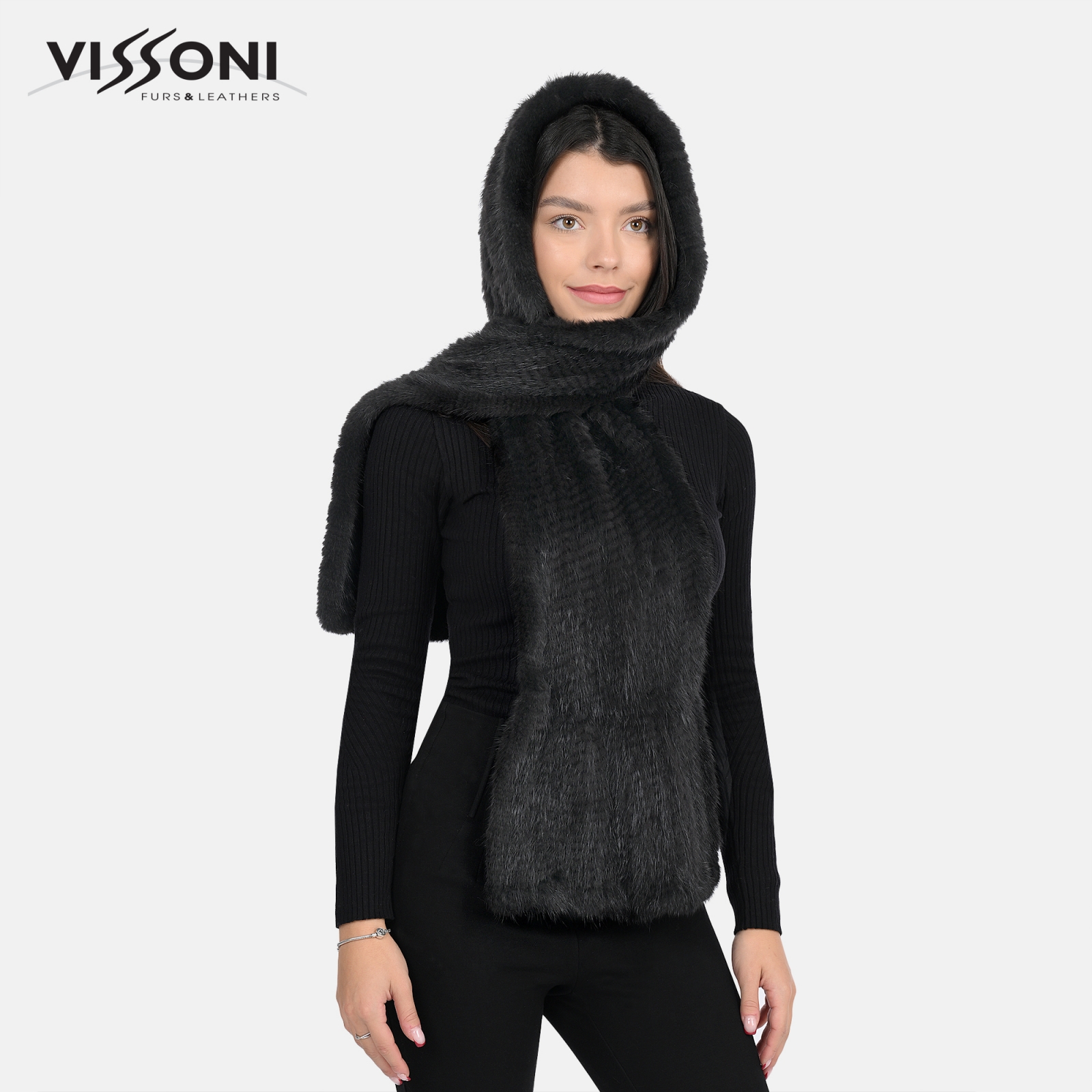 Луксозен дамски шал, изработен от 100% естествен косъм от норка – изключително мек, фин и топъл материал, който придава усещане за елегантност и комфорт.