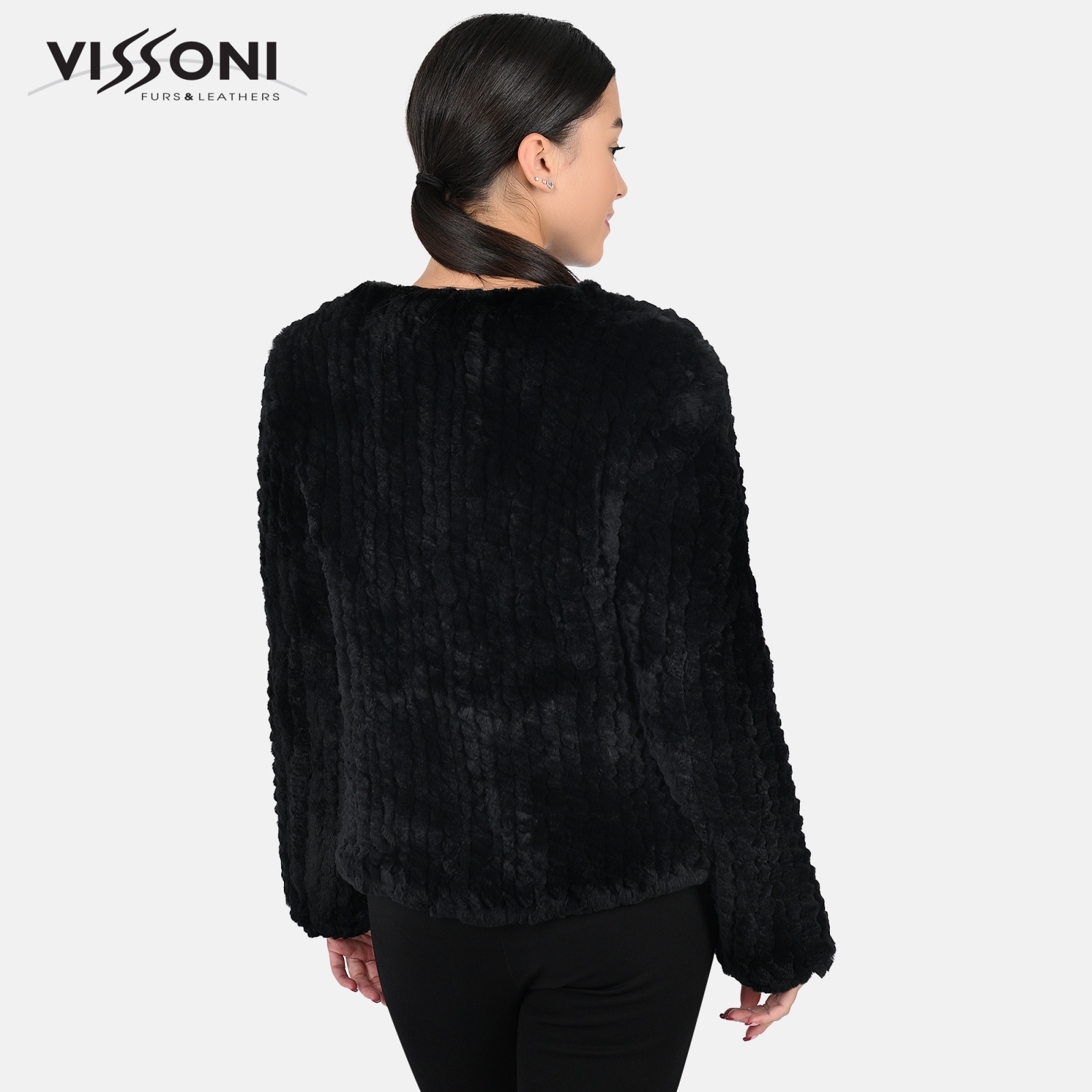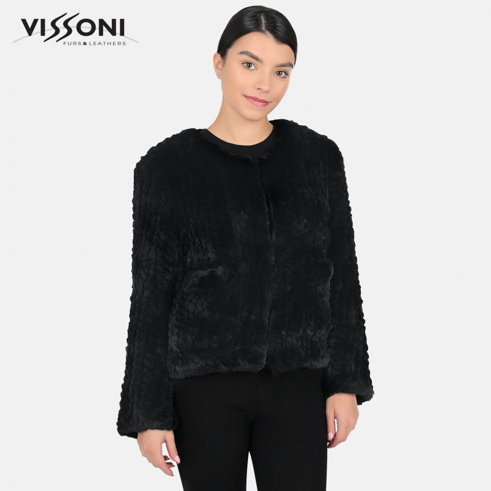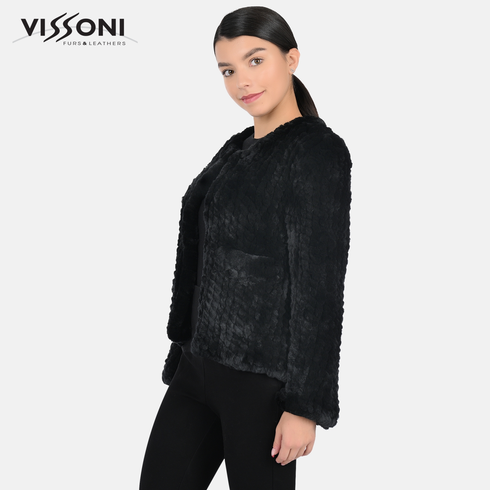 • Дамска елегантна жилетка с джобове от естествен косъм на Rex Chinchilla - Black