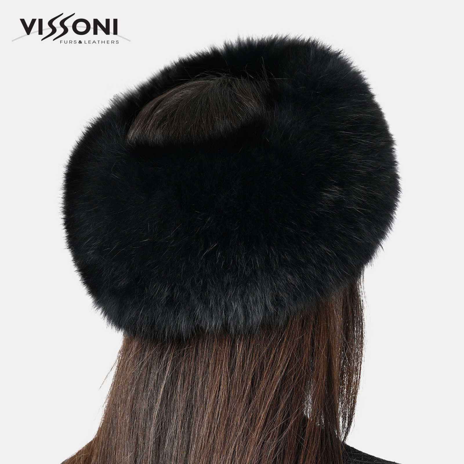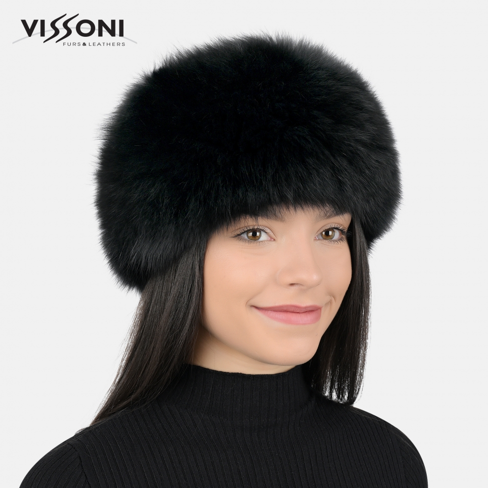 Лента за глава от естествен косъм на лисица - Черна