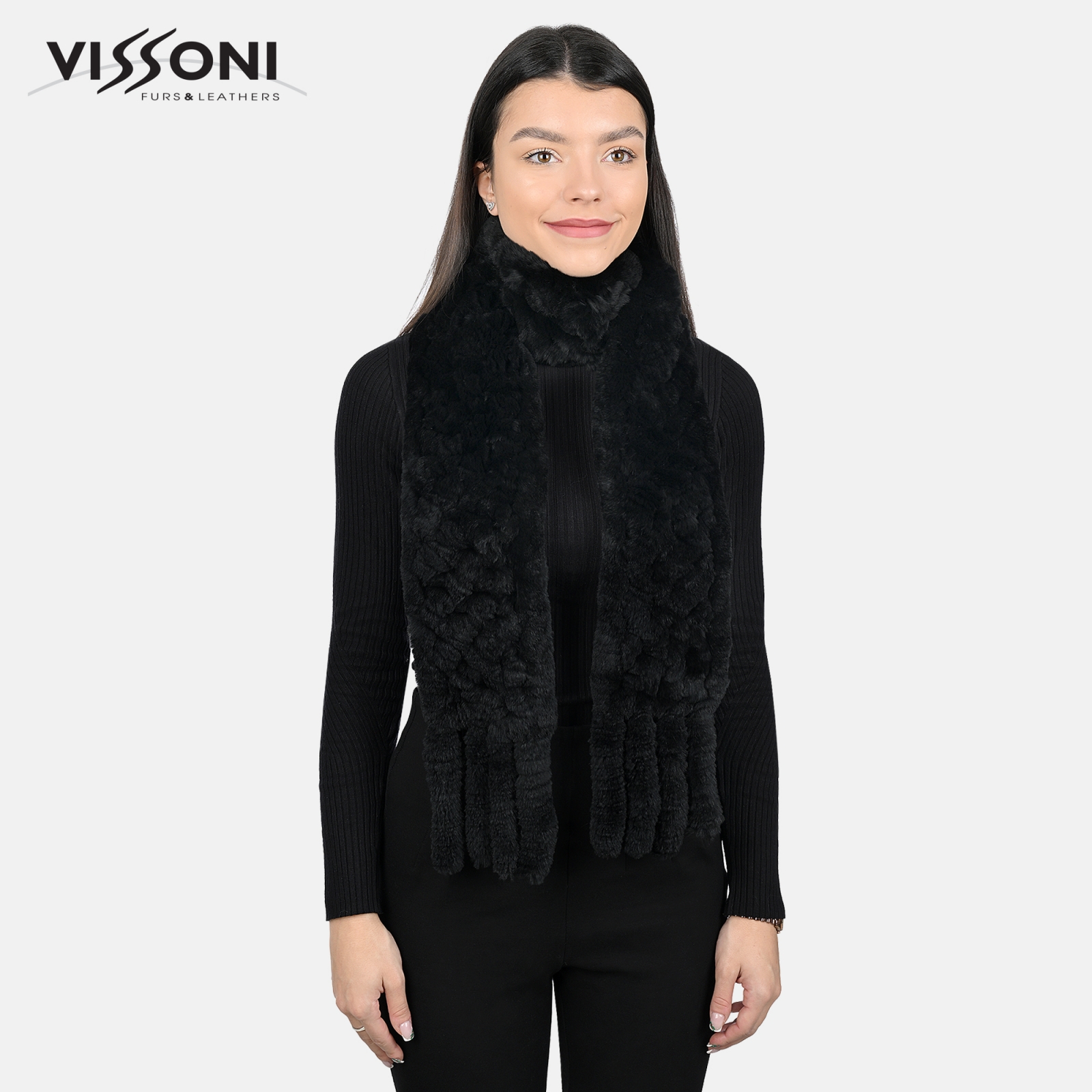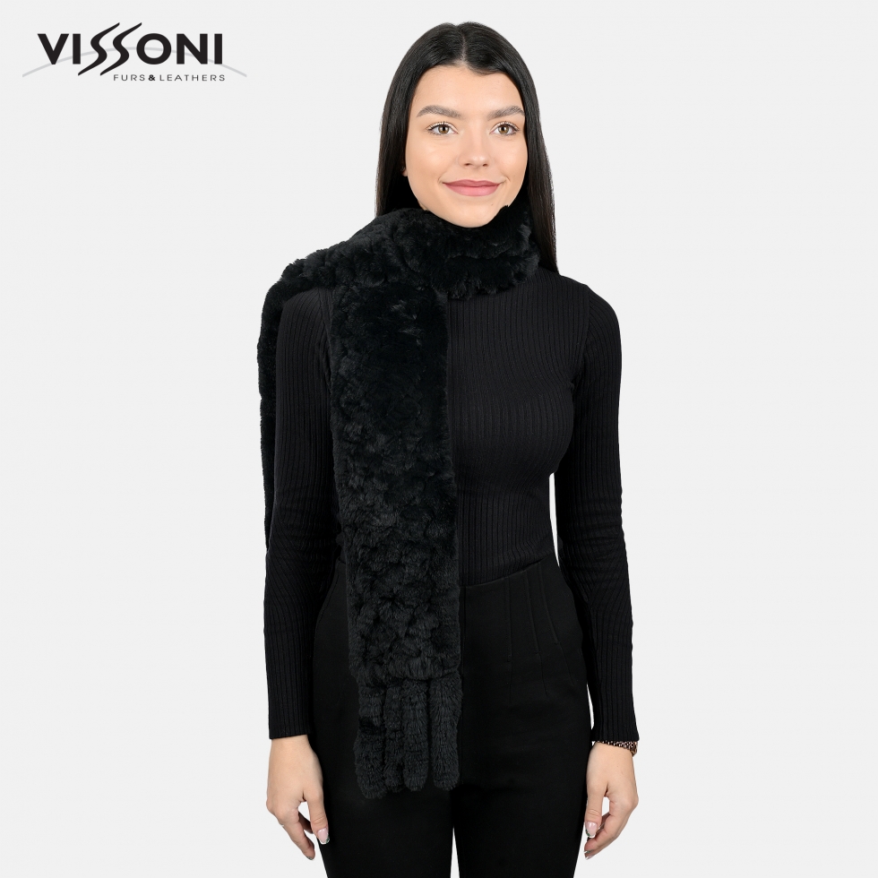 Дамски шал от естествен косъм на Rex Chinchilla - Black
