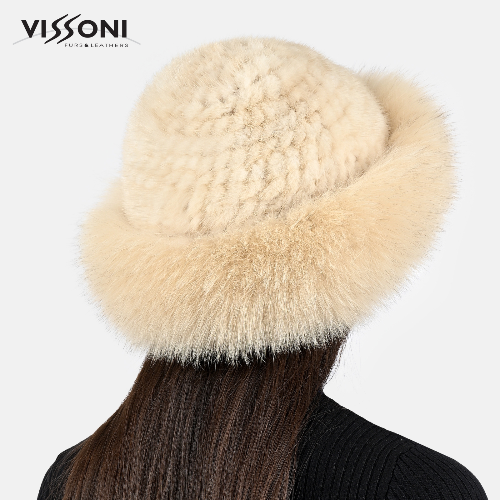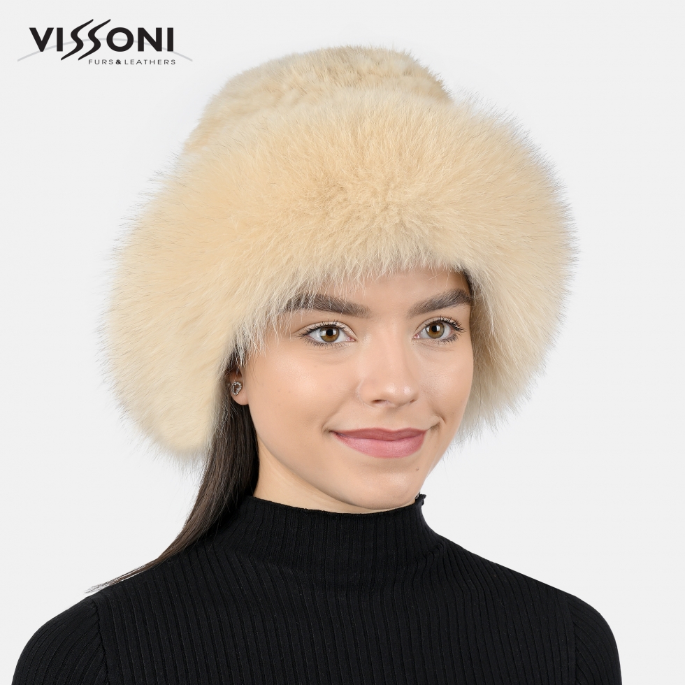 Дамска шапка от естествен косъм на норка с борд от лисица - Паломино