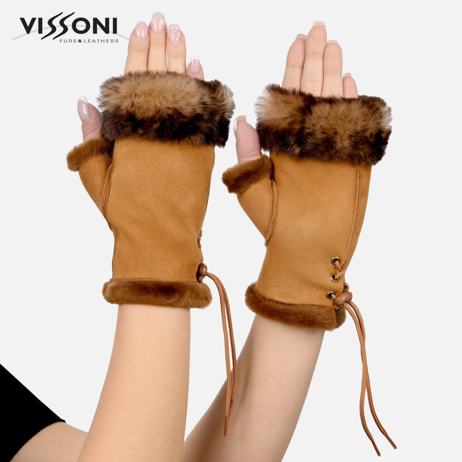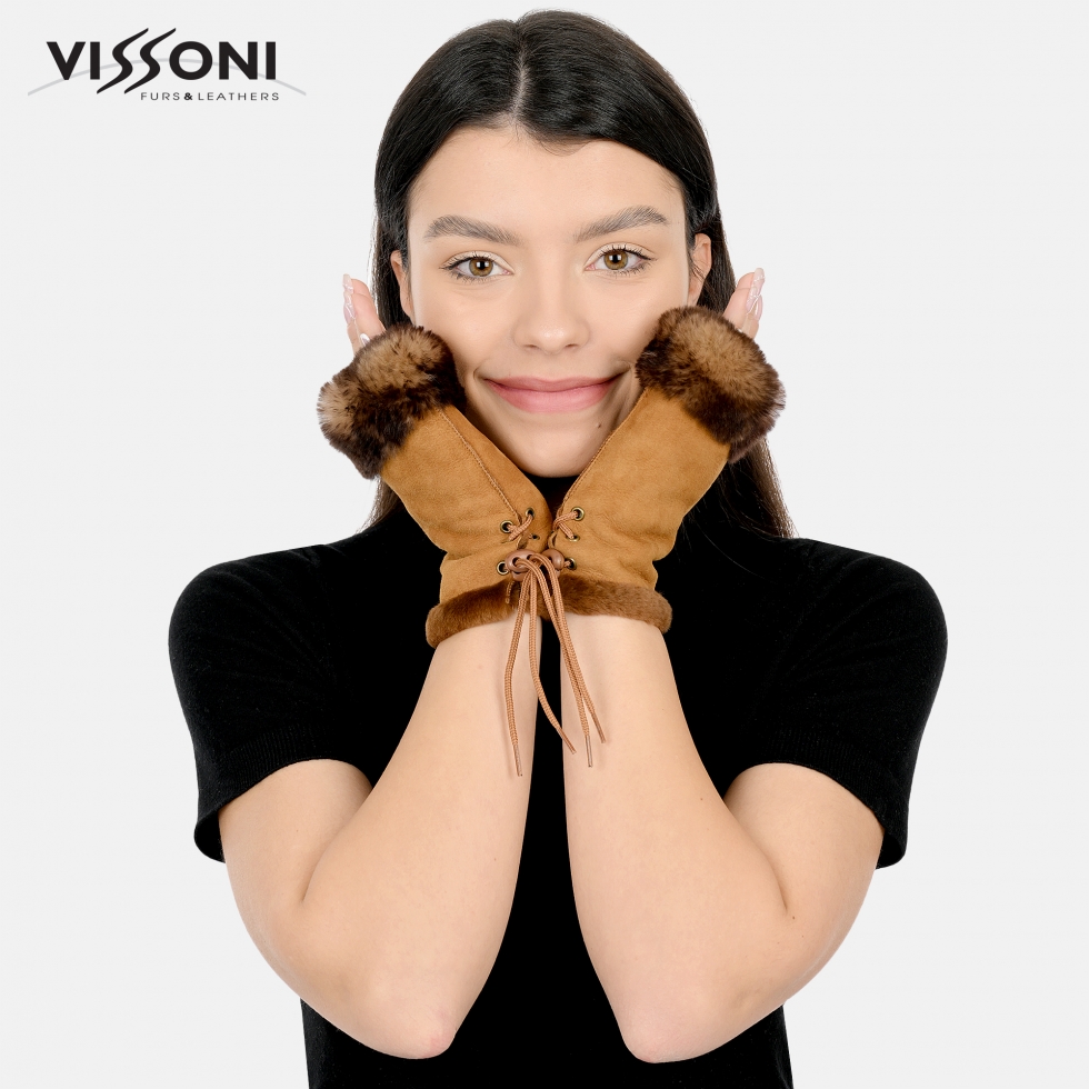 • Дамски ръкавици без пръсти от естествена агнешка кожа - Таба