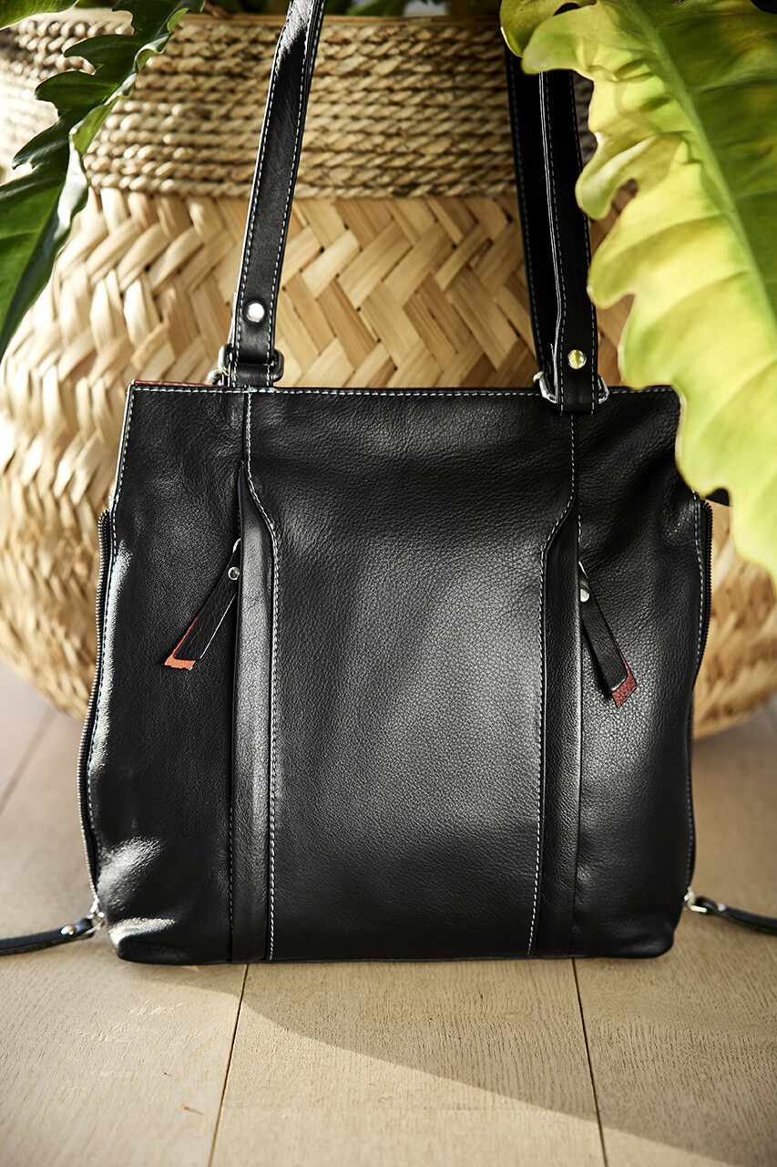 Класическа и стилна комбинирана раница от мека телешка кожа