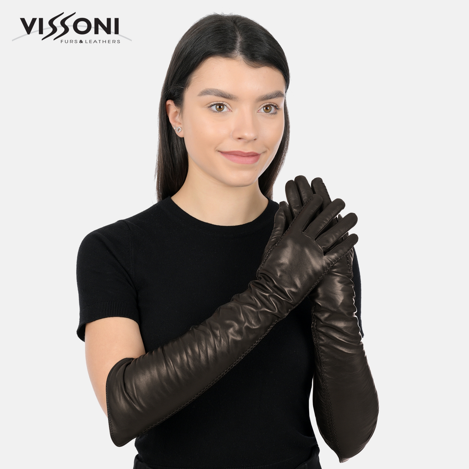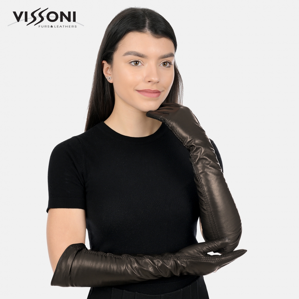 • Дълги кожени ръкавици с два декоративни шева - Кафяв