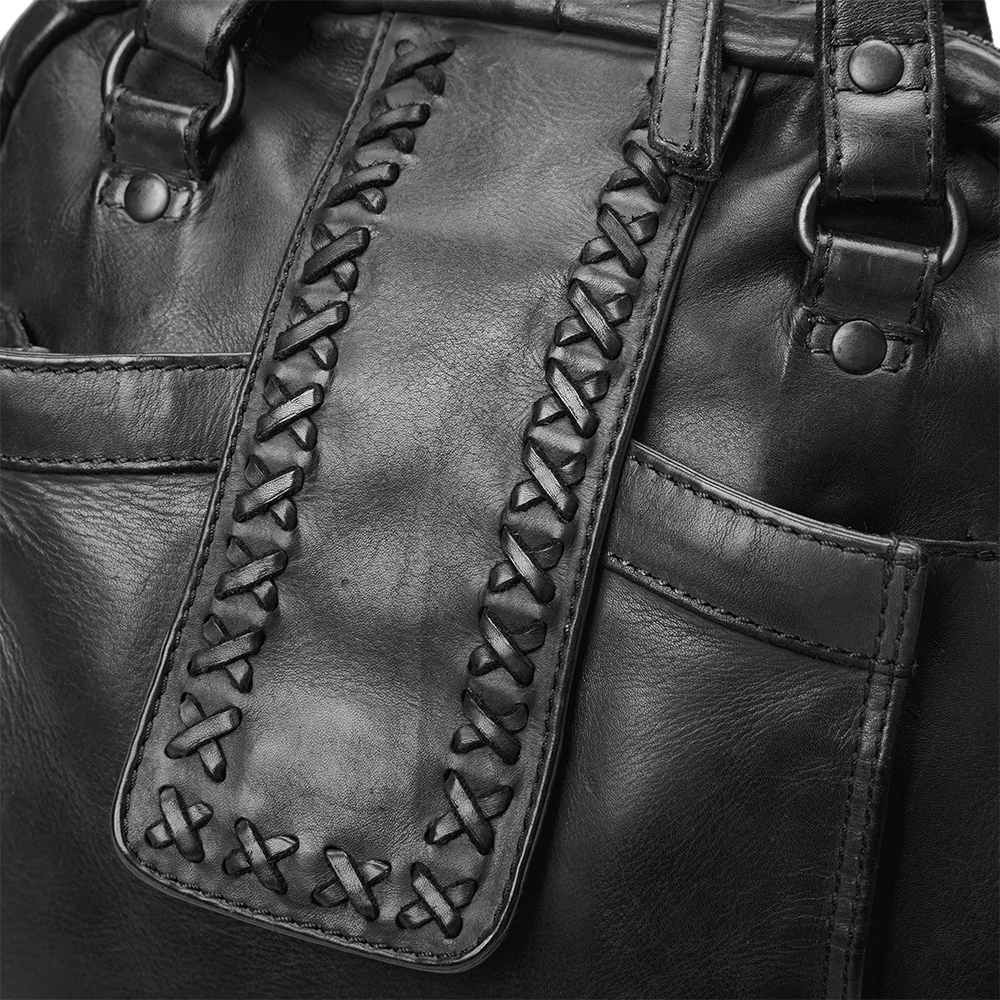 - В предната част на чантата има по-голям джоб, който се отваря с бутон