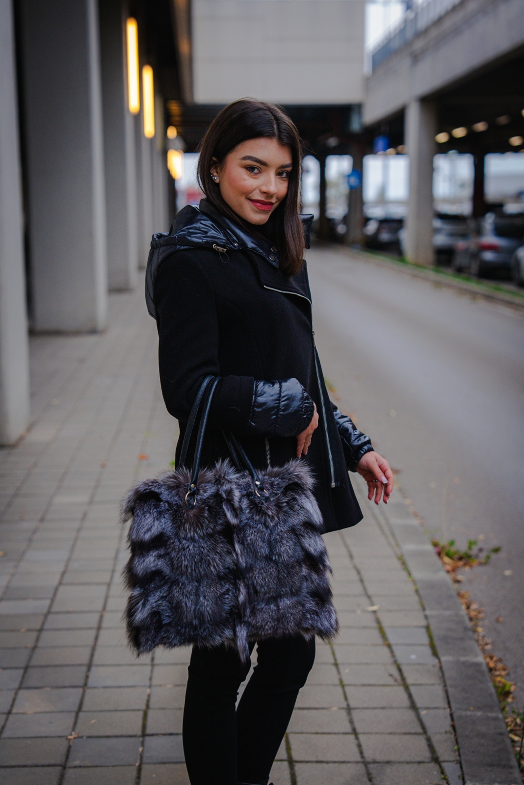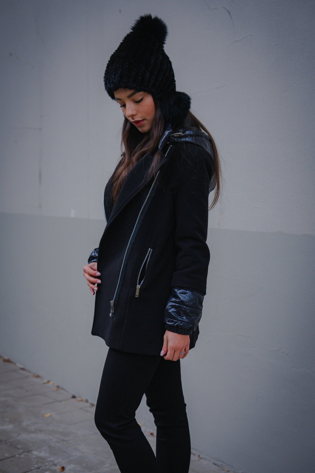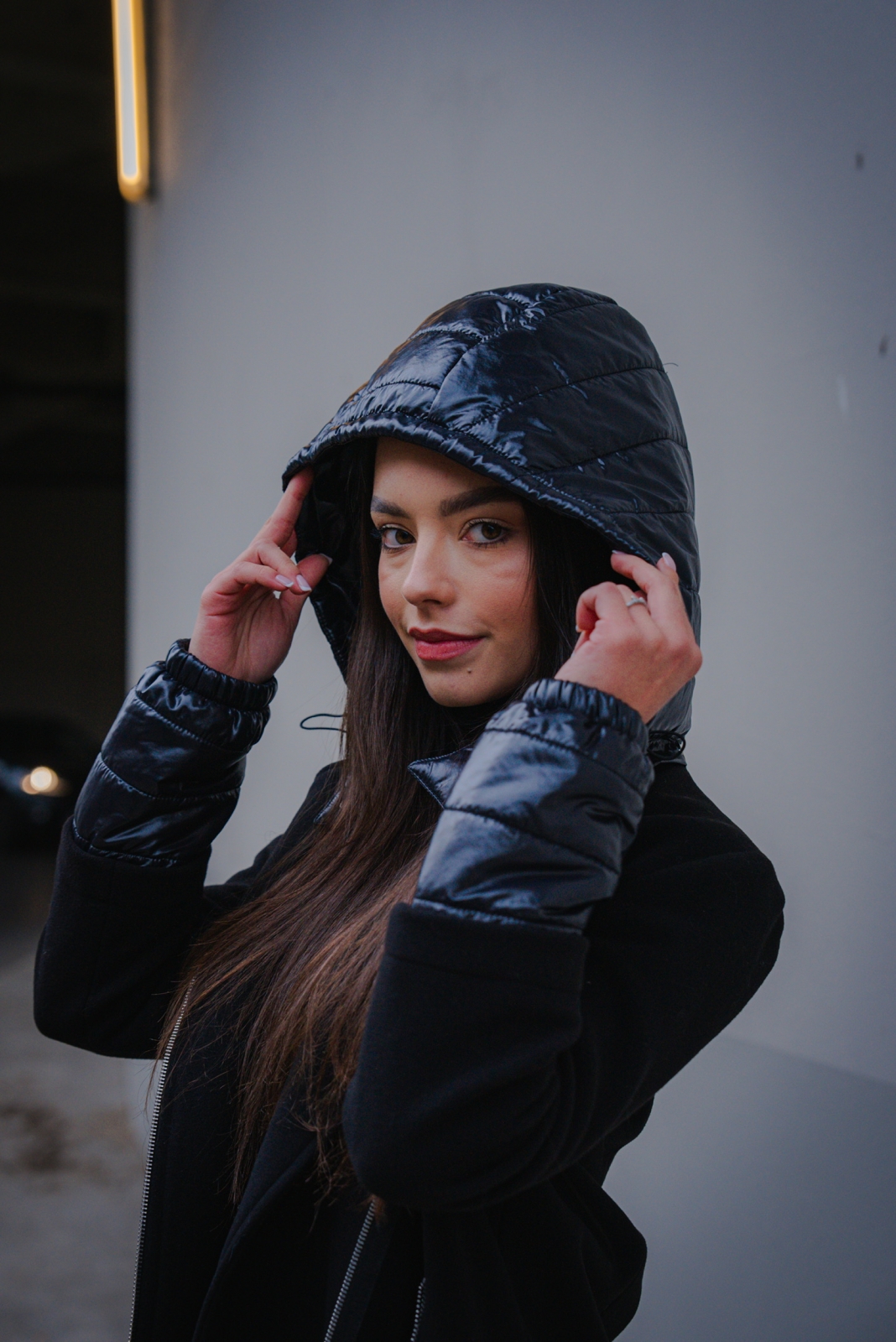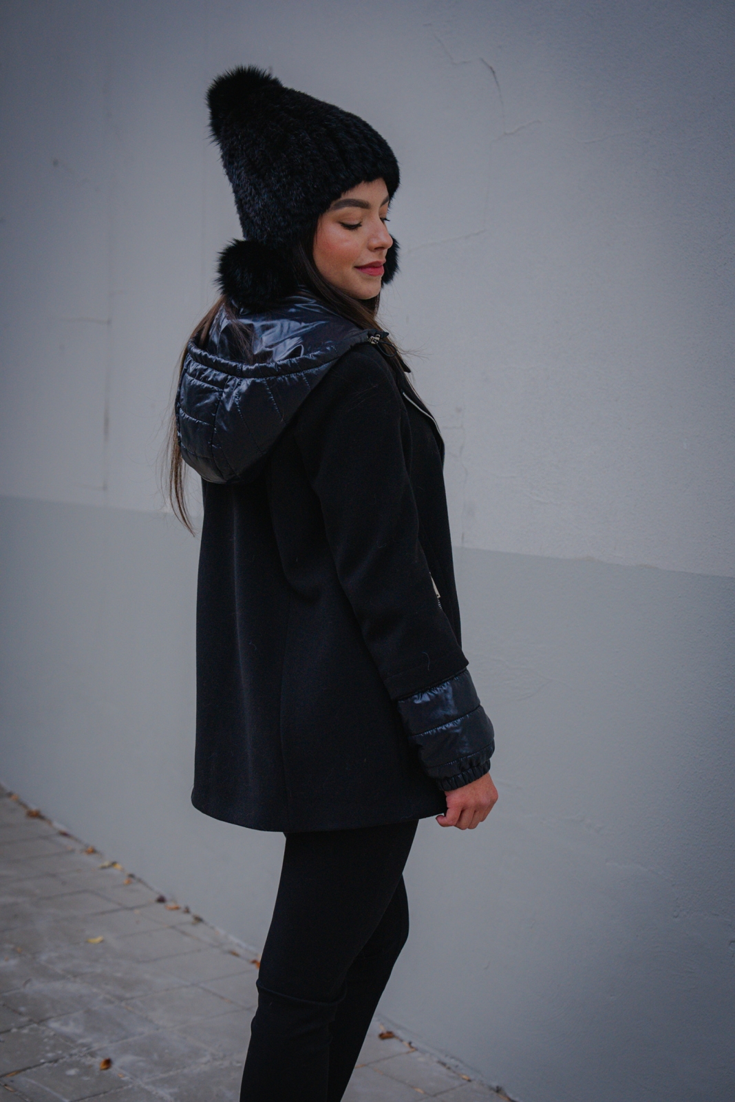 • Спортно-елегантно дамско палто, съчетаващо текстил с шушлякови акценти, които придават модерен и функционален вид.