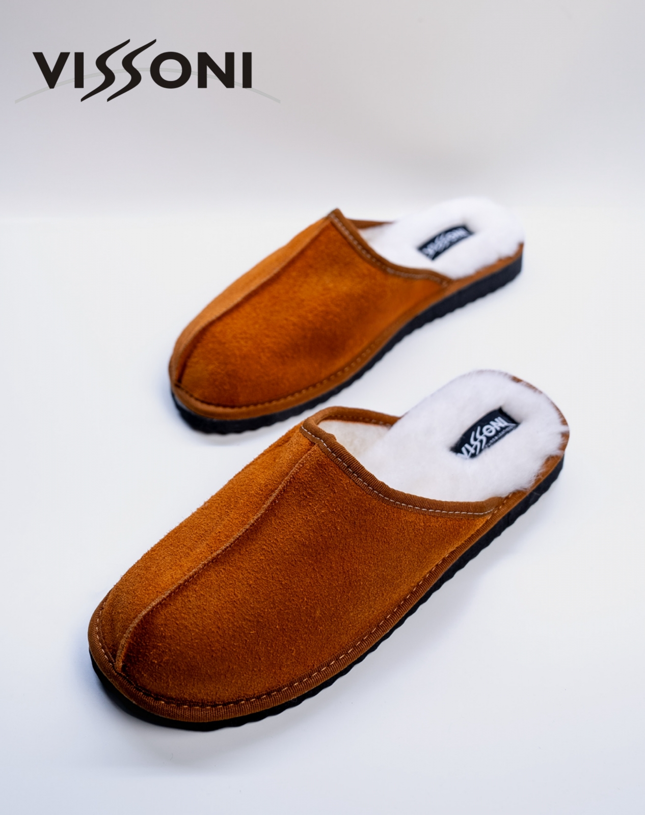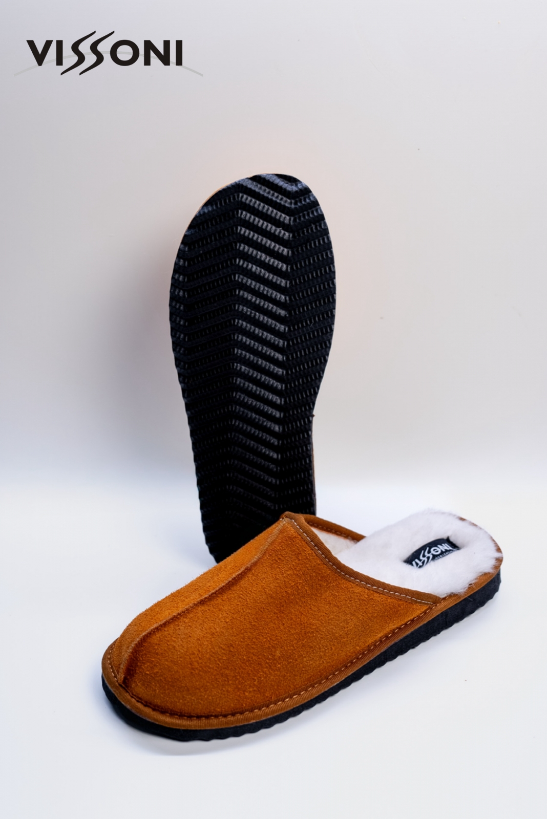 • Мъжки чехли, изработени от естествена агнешка кожа