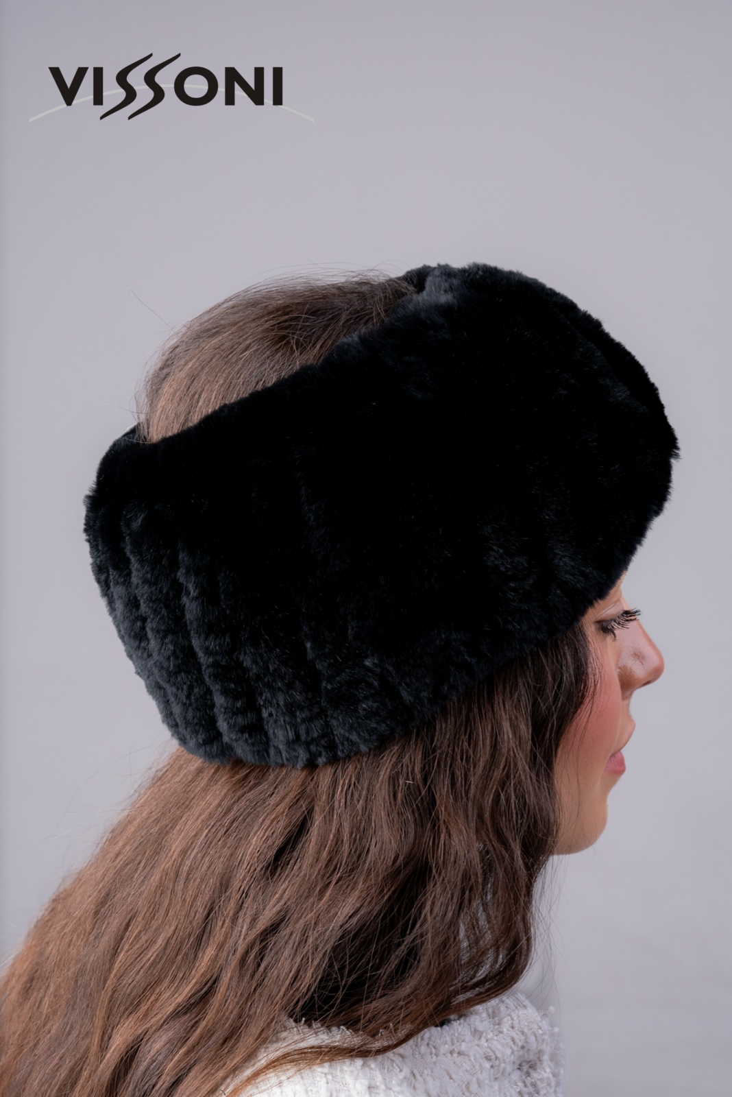 • Лента за глава от 100% естествена Rex Chinchilla - цвят Black