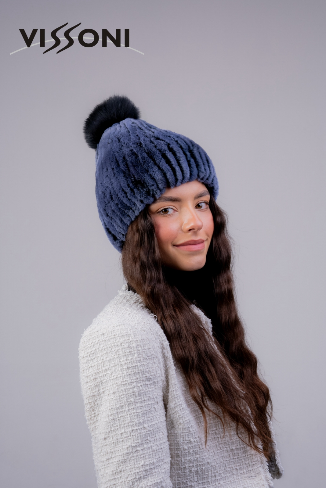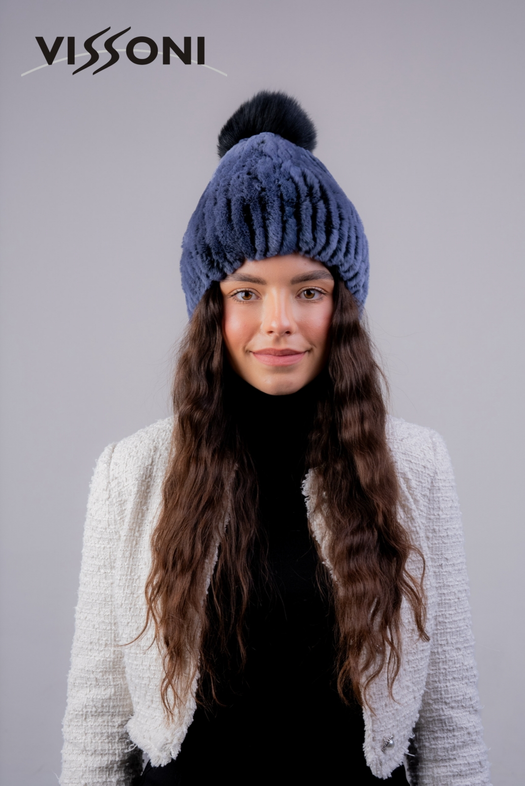 Дамска шапка от естествен косъм на Rex Chinchilla - Blue