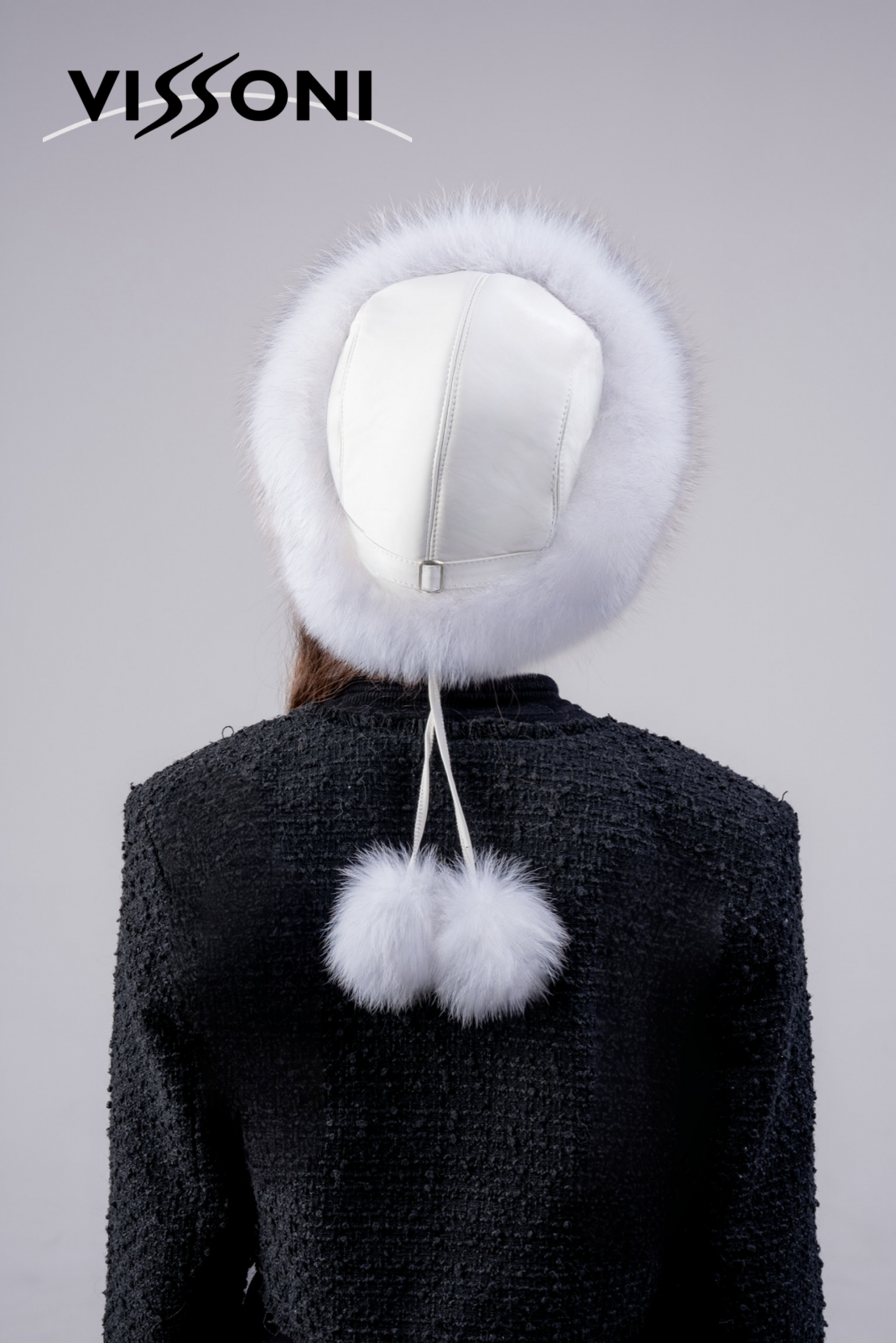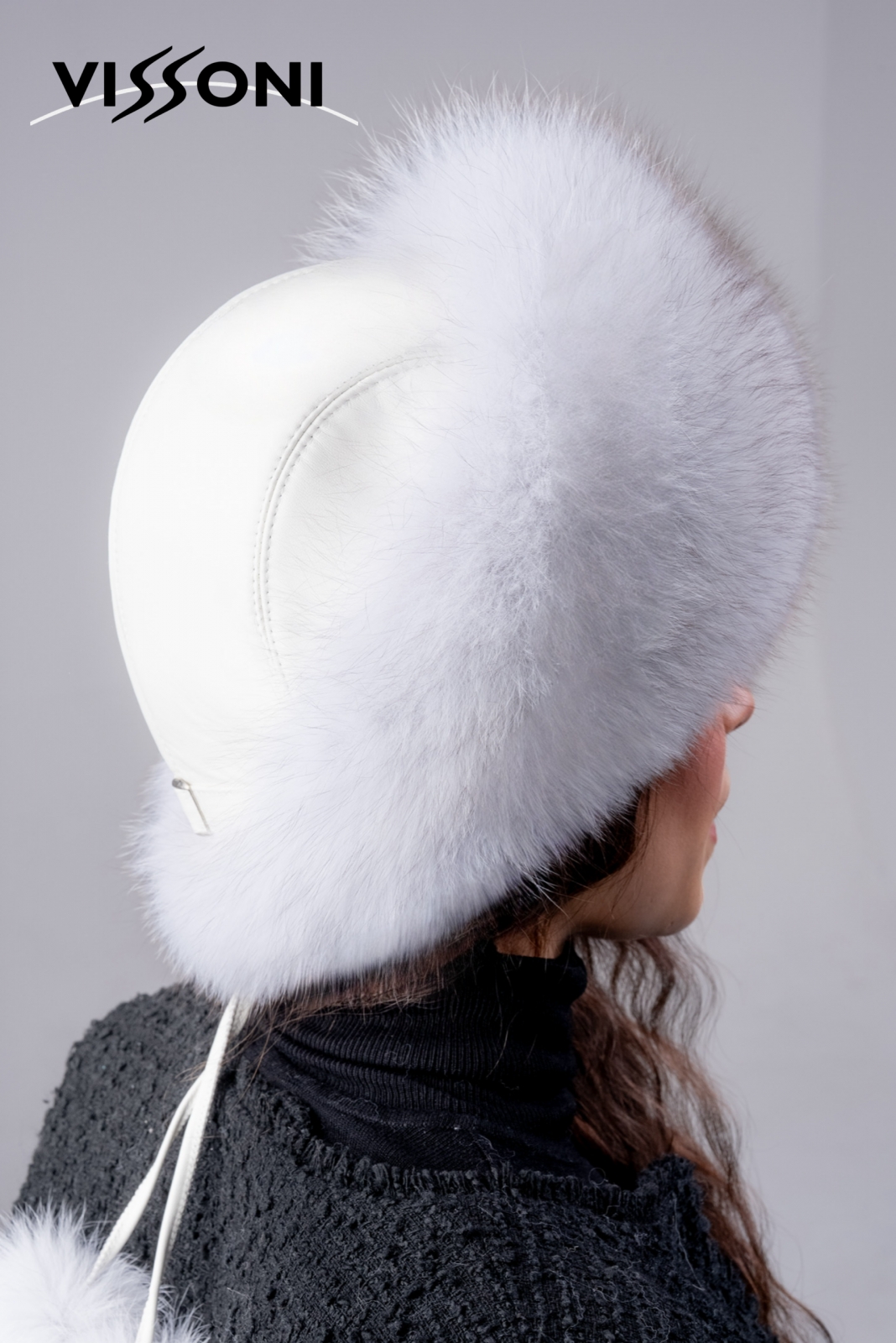 • Дамска шапка от естествена агнешка напа с естествен косъм на лисица - White