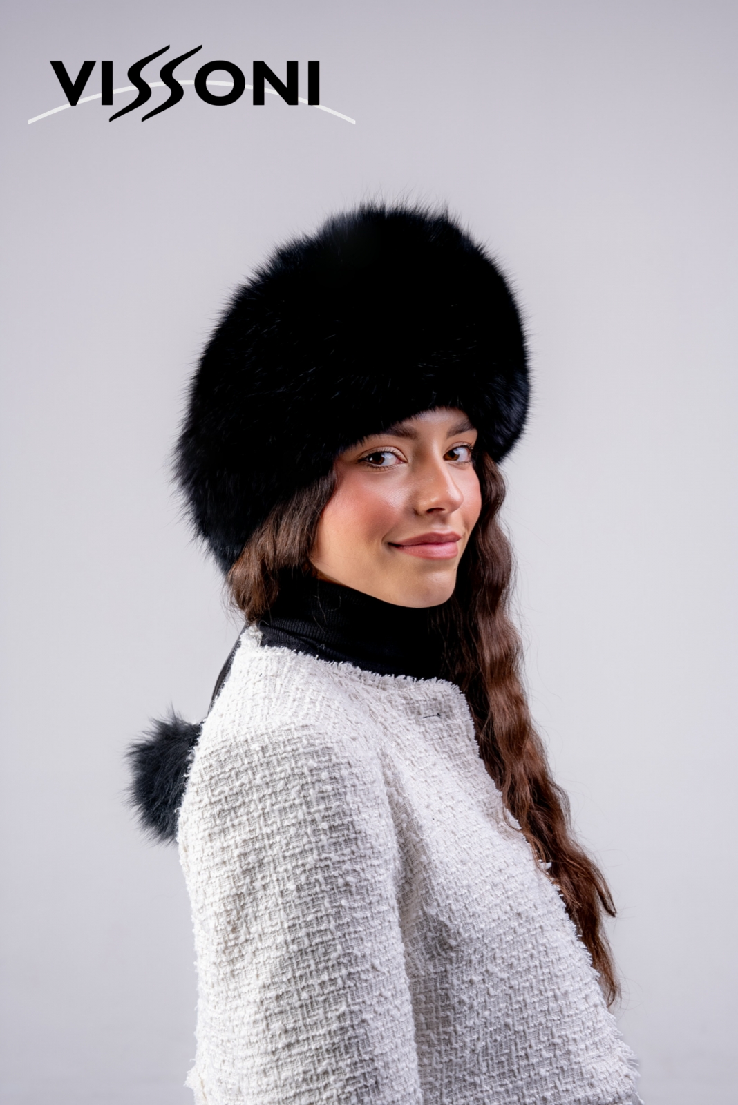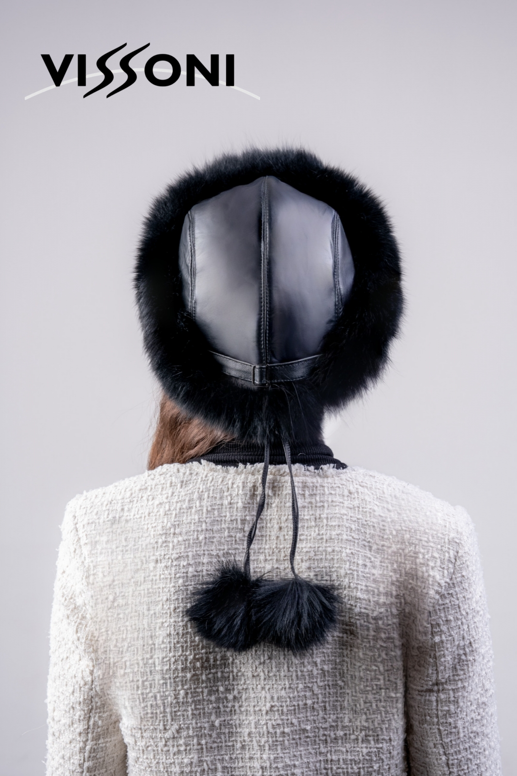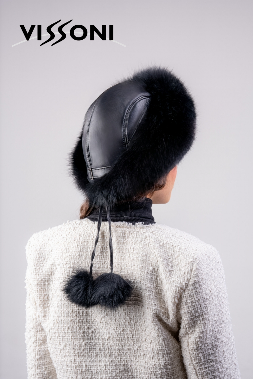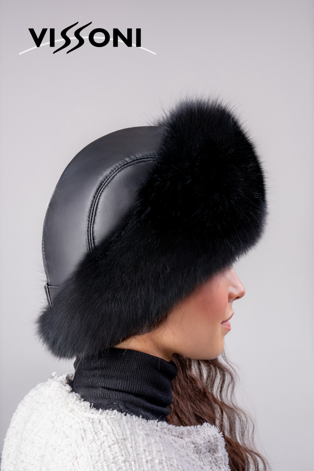 Елегантна дамска шапка от естествена агнешка напа (лицева кожа) в комбинация с борд от пищен косъм на лисица, цели кожи.