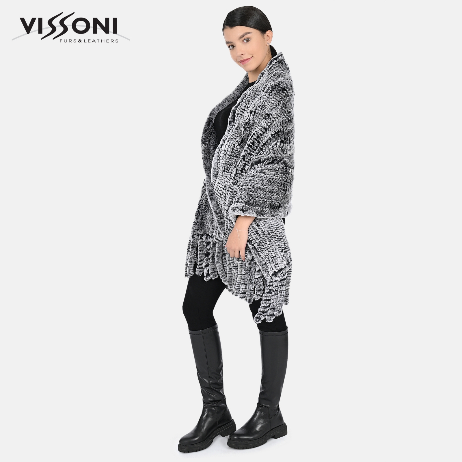 Дамски шал с джобове от естествен косъм на Rex Chinchilla - Black