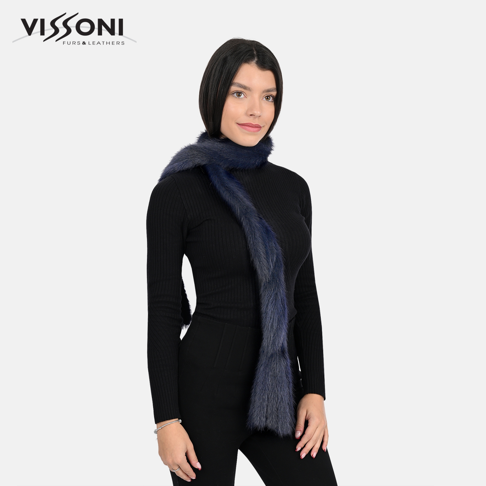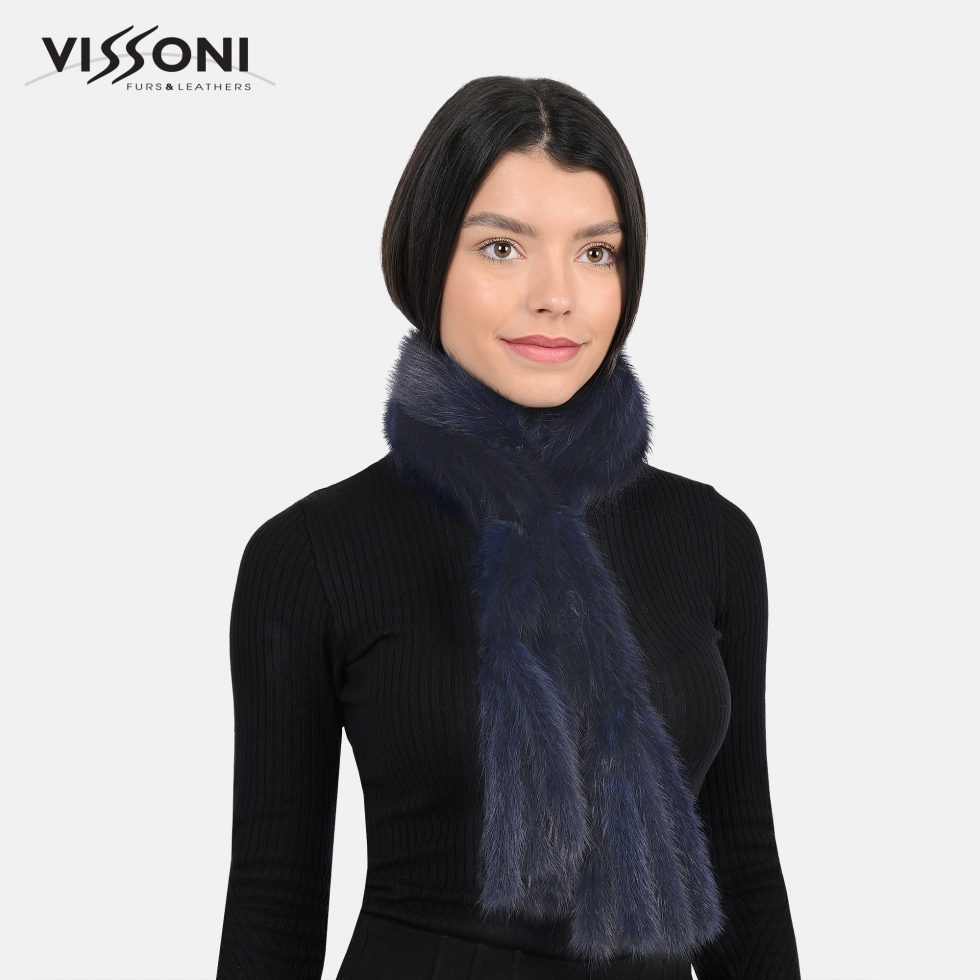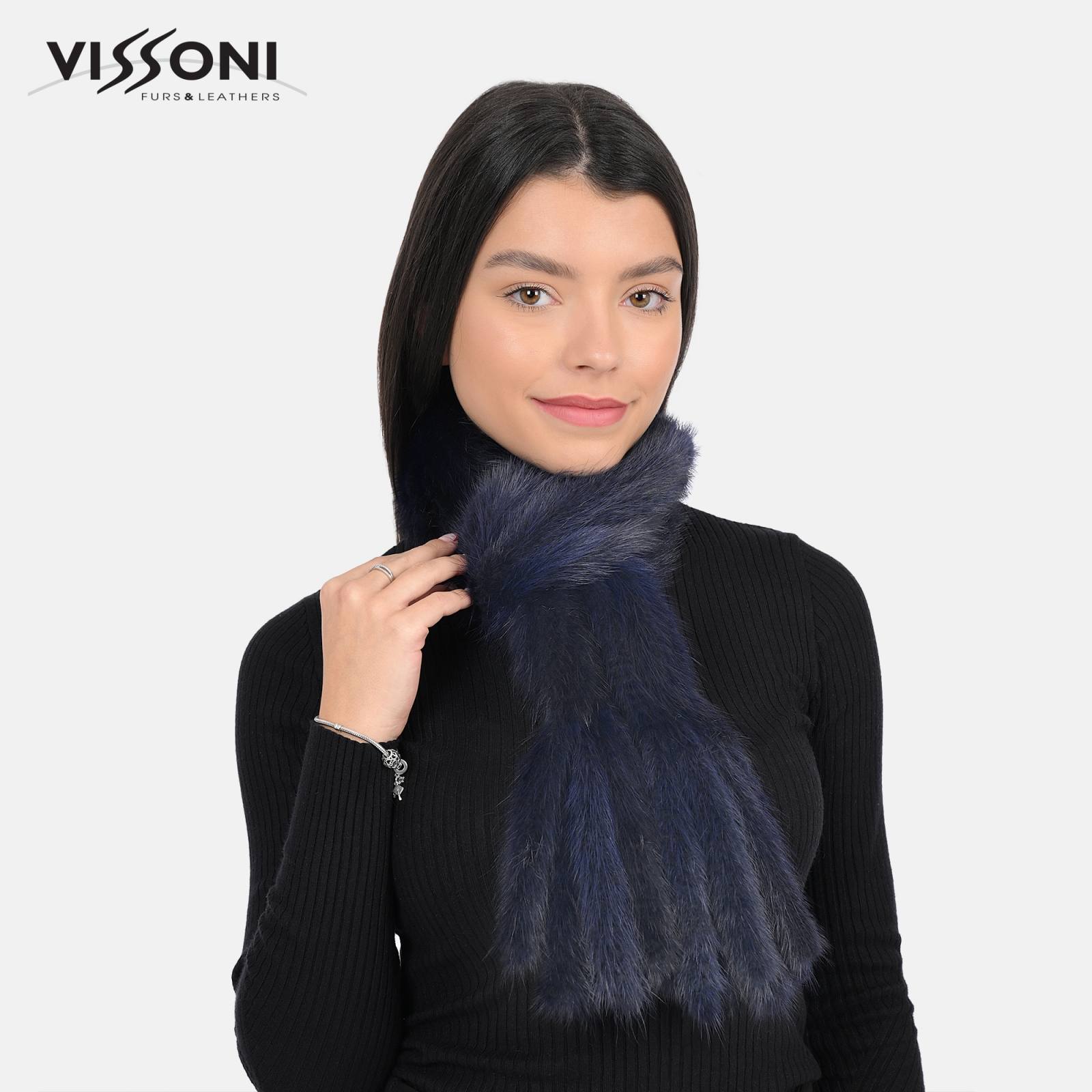 • Дамски шал от естествен косъм на норка - Тъмно син