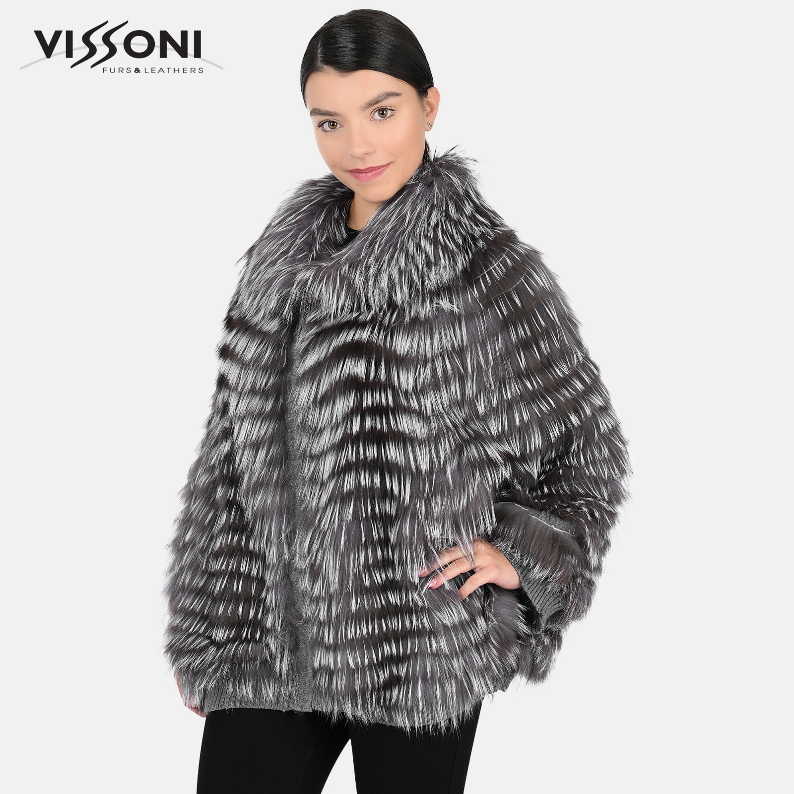 • Дамски жакет от естествен косъм на Сребърна лисица