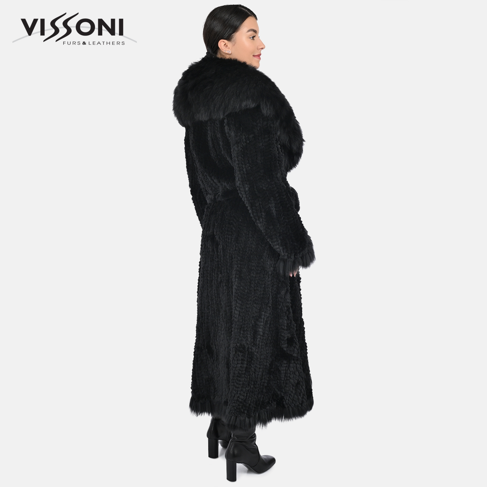 Дамска палто плетиво от естествен косъм Rex Chinchilla с акценти от лисица - Black