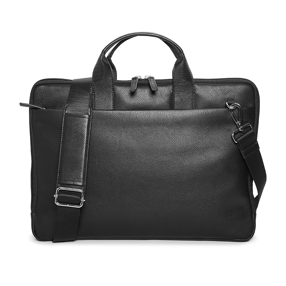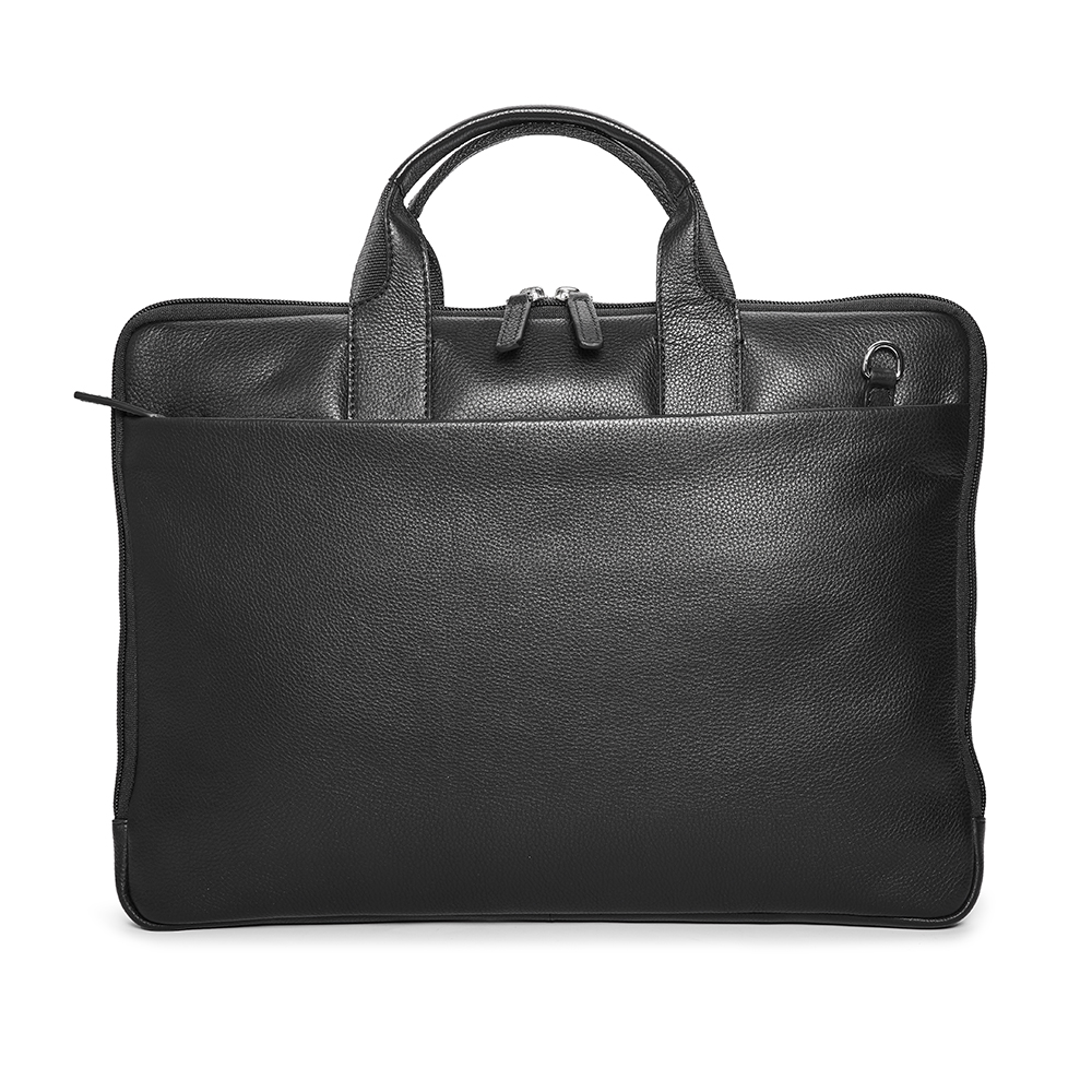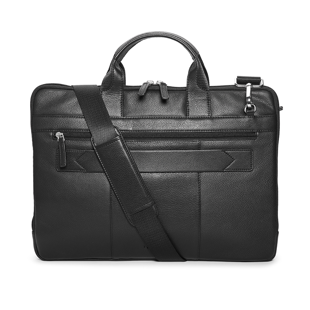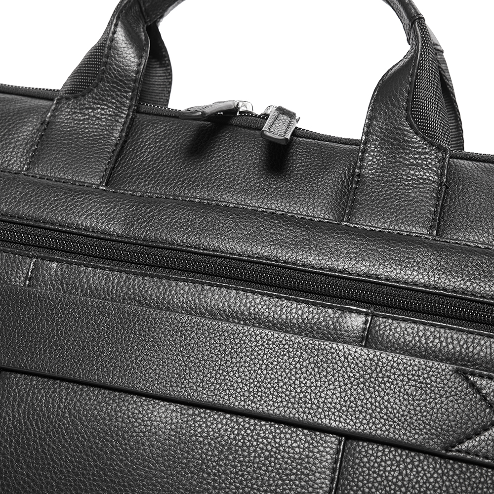 - The bag has one large zippered compartment, divided by a lined protective pocket for your PC.
