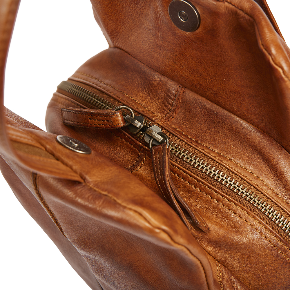 • There are two zippered compartments and a pocket, where one zippered compartment functions as a divider. There is space for storing smaller items such as a mobile phone, keys and wallet.