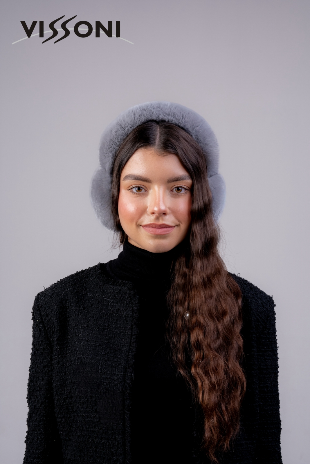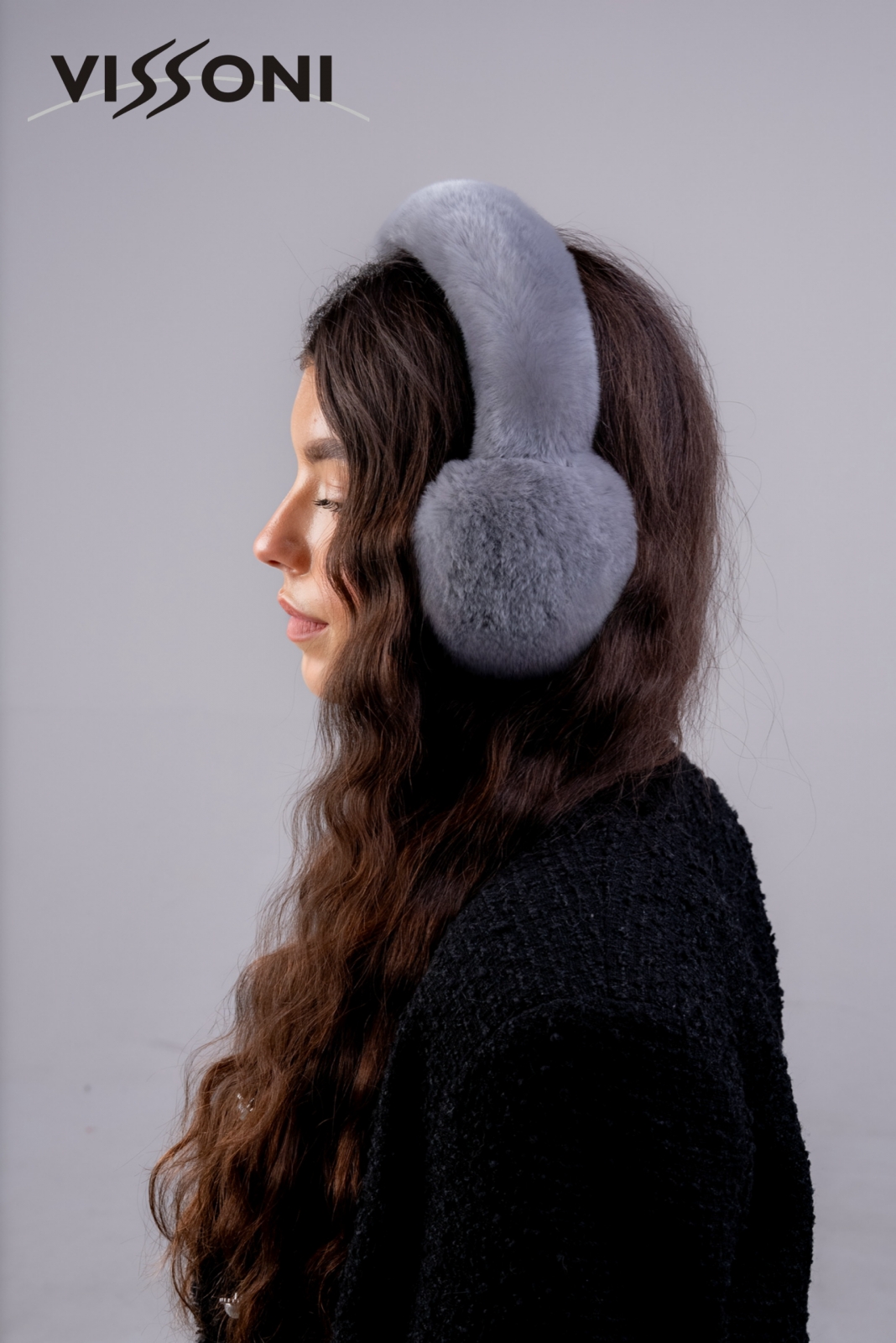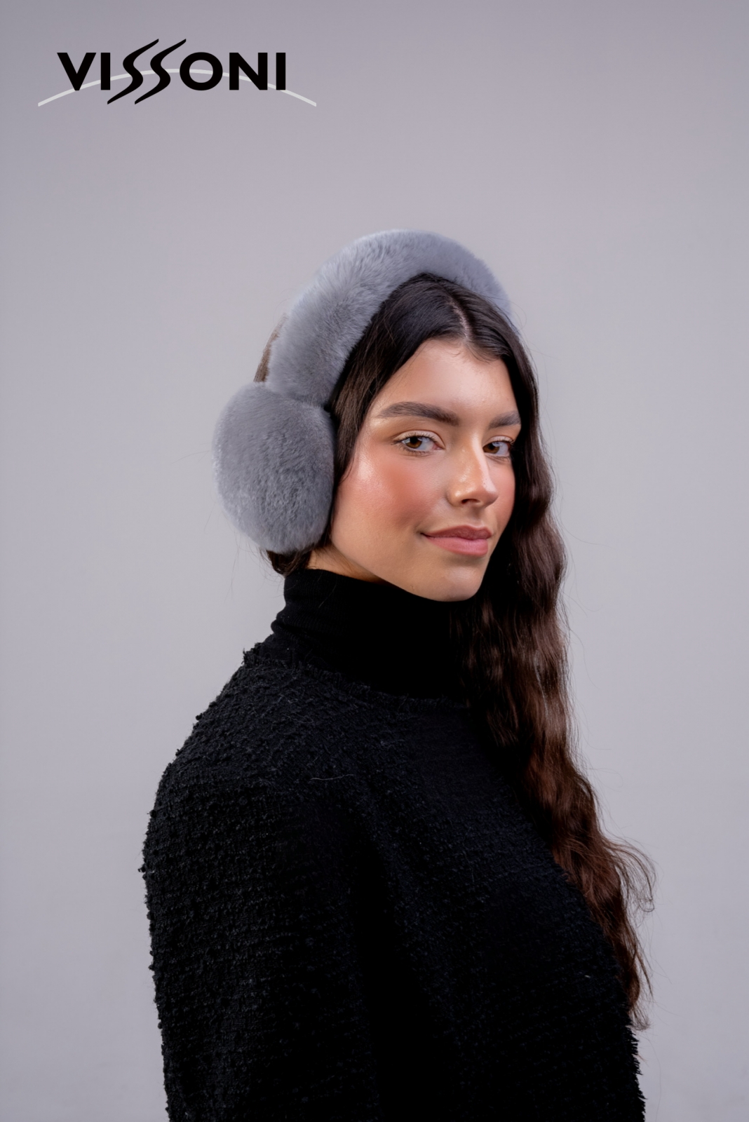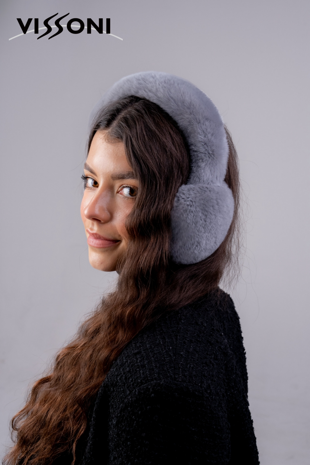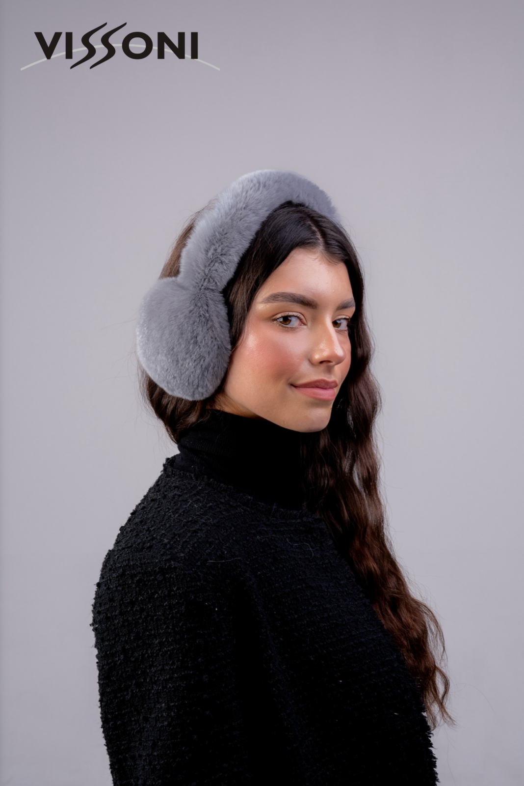 • 100% natural Rex Chinchilla earmuffs - color Grey