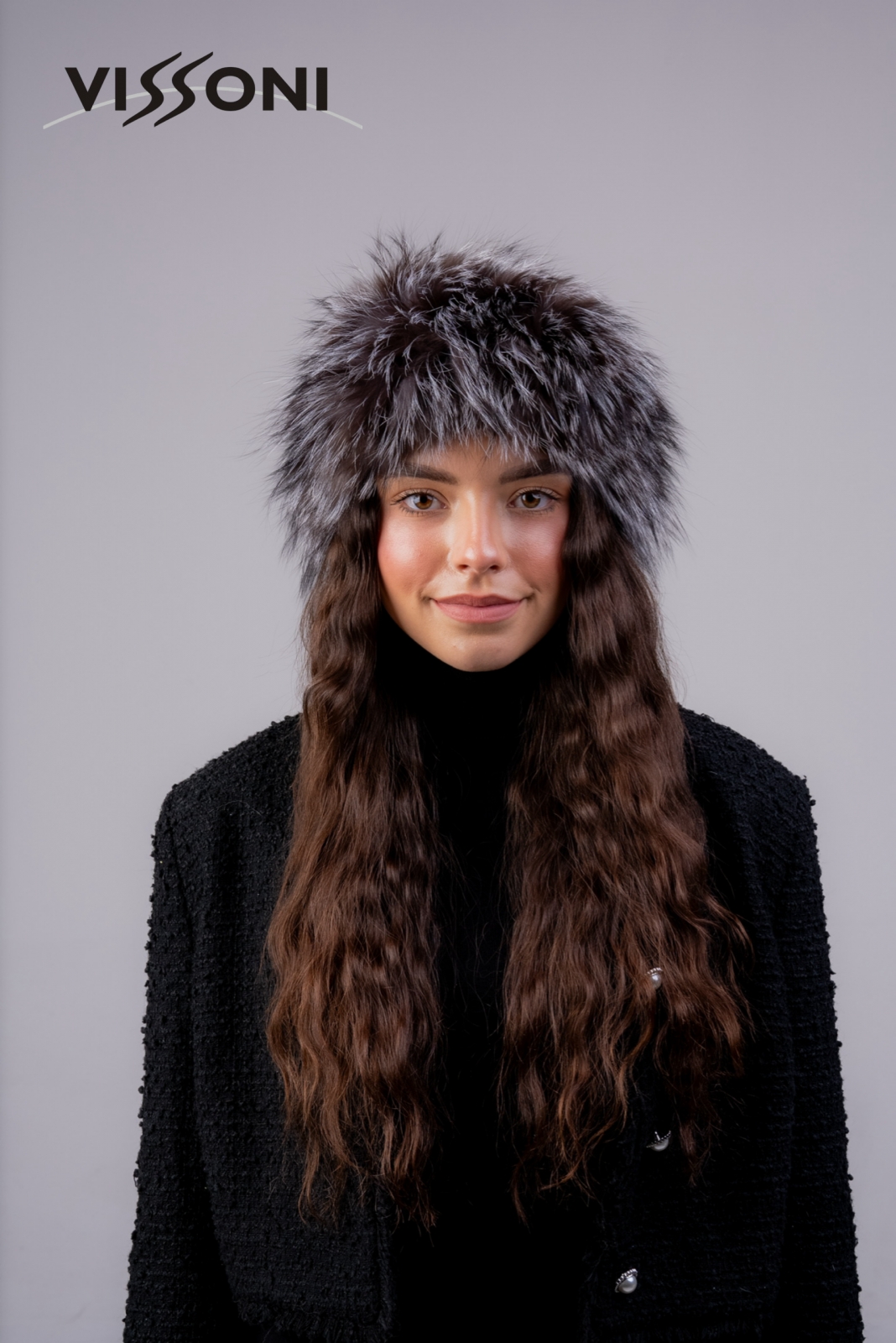 • Лента за глава от естествен косъм на лисица - Сребърна