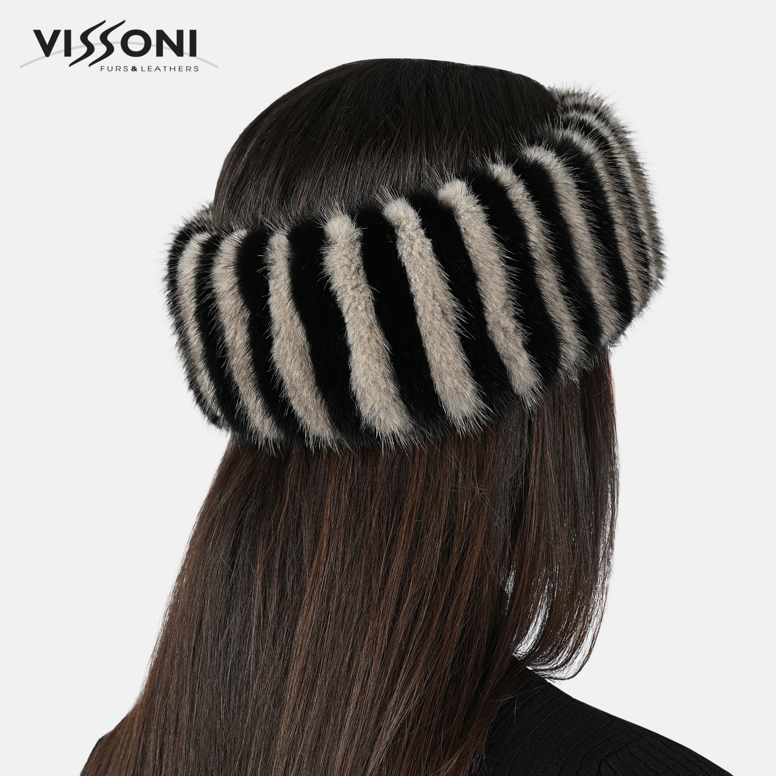 Лента за глава от естествен косъм на норка - Бяла/ЧернаЛента за глава от естествен косъм на норка - Махагон