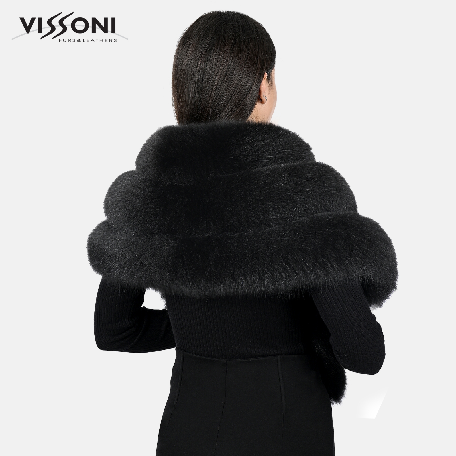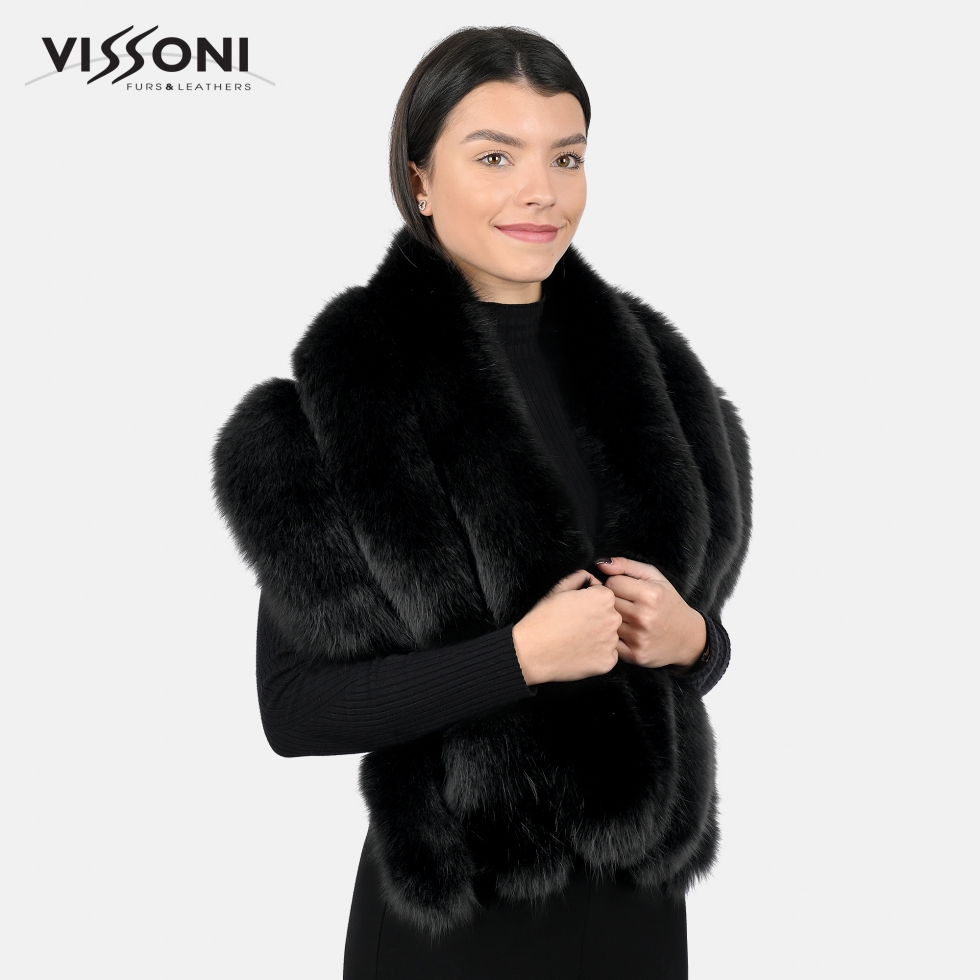 Луксозна наметка от лисица - Черна